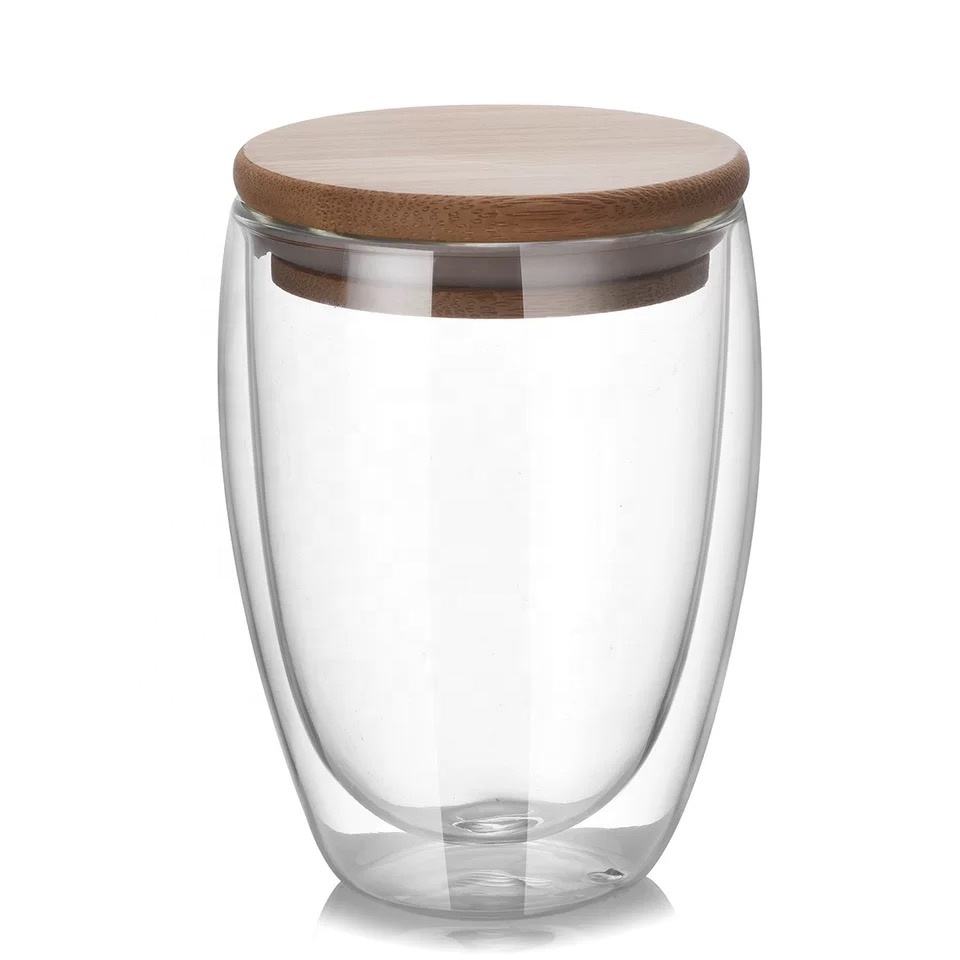 YOYO 150ml 250ml 350ml 450ml Double Wall Insulated Borosilicate Coffee Tea Glass Cup Set with Handle And Lid