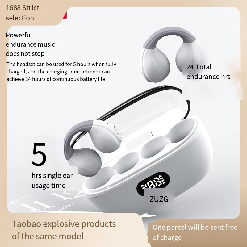 Ear clip Bluetooth headphones Ultra-long life noise-cancelling bone conduction sports headphones