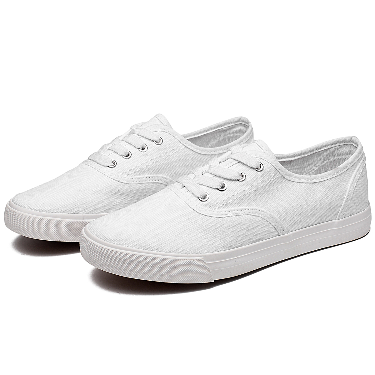 Women's Casual Lace Up Canvas Shoes Flat Walking Style White Sneakers for Ladies