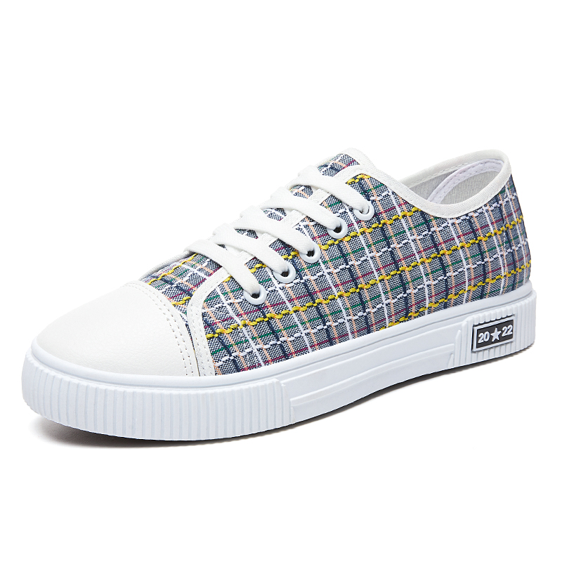 G-20A 2023 Spring Summer New Fashion student Plaid Breathable Women's Shoes Casual Low-top Lace-up Canvas Shoes