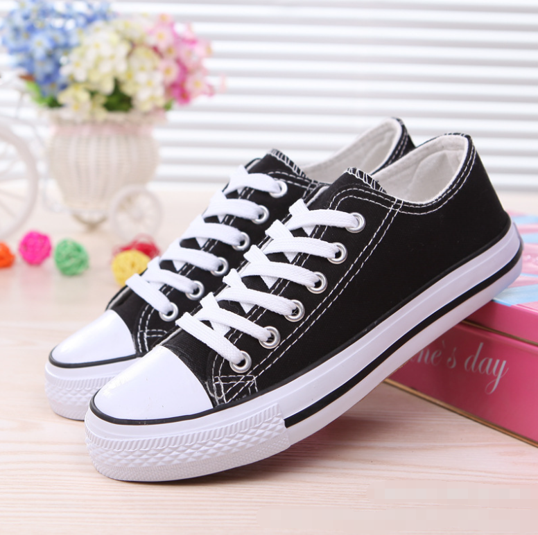 Direct Classic Low Cut Vulcanized Flat Plain Blank White Black Casual Canvas Shoes Sneakers for women