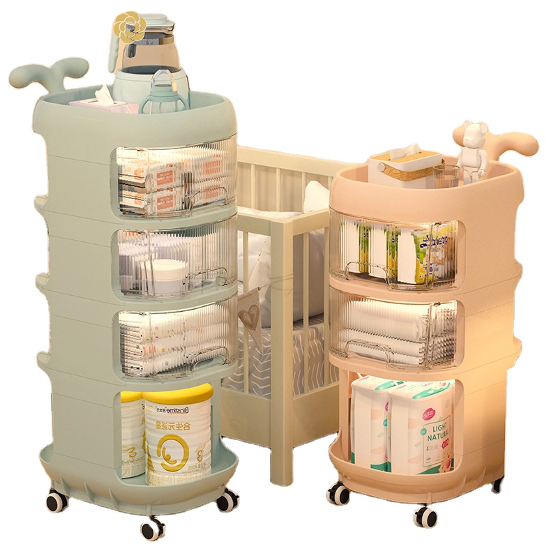 Baby Product Storage Rack Plastic Trolley With Removable Mobile Drawers