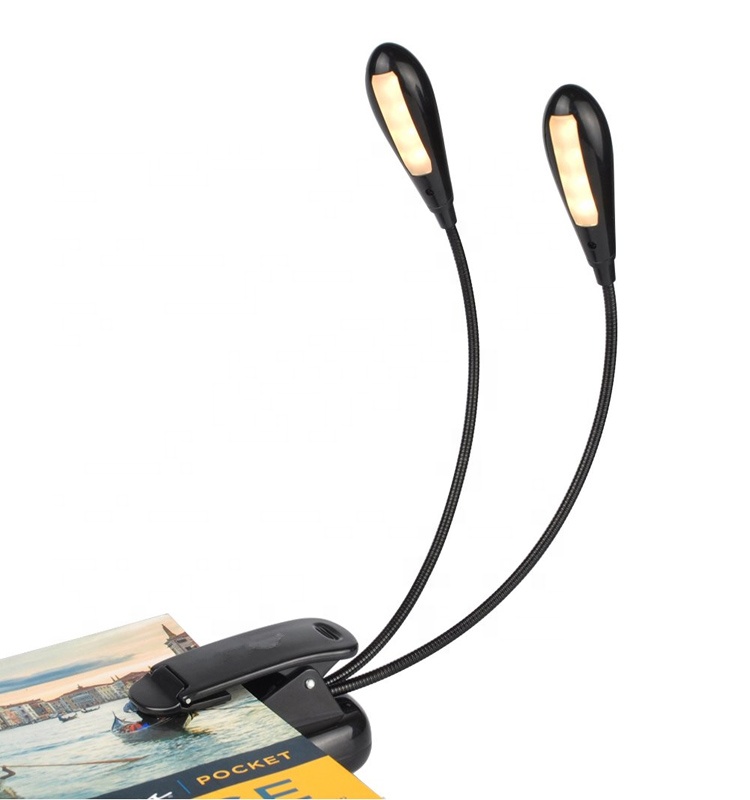 LED light Clip on Reading book light with 2 flexible arms Desk Lamp USB Rechargeable Perfect for Bookworms & Kids