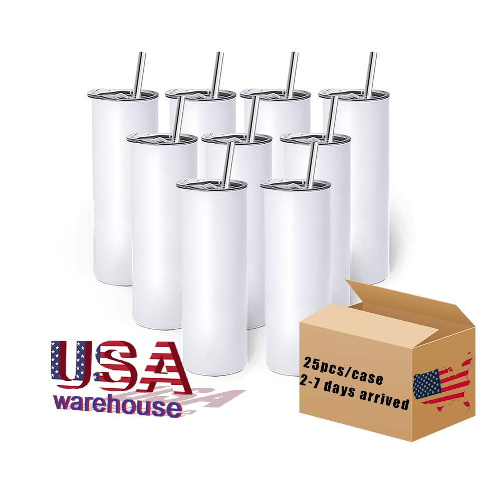 USA 2 Days Delivery 20oz white sublimation blanks stainless steel Water Bottles skinny straight sublimation tumblers wit
