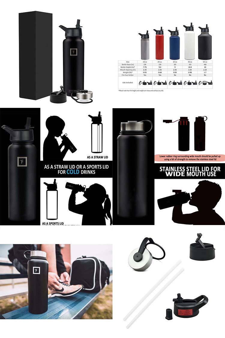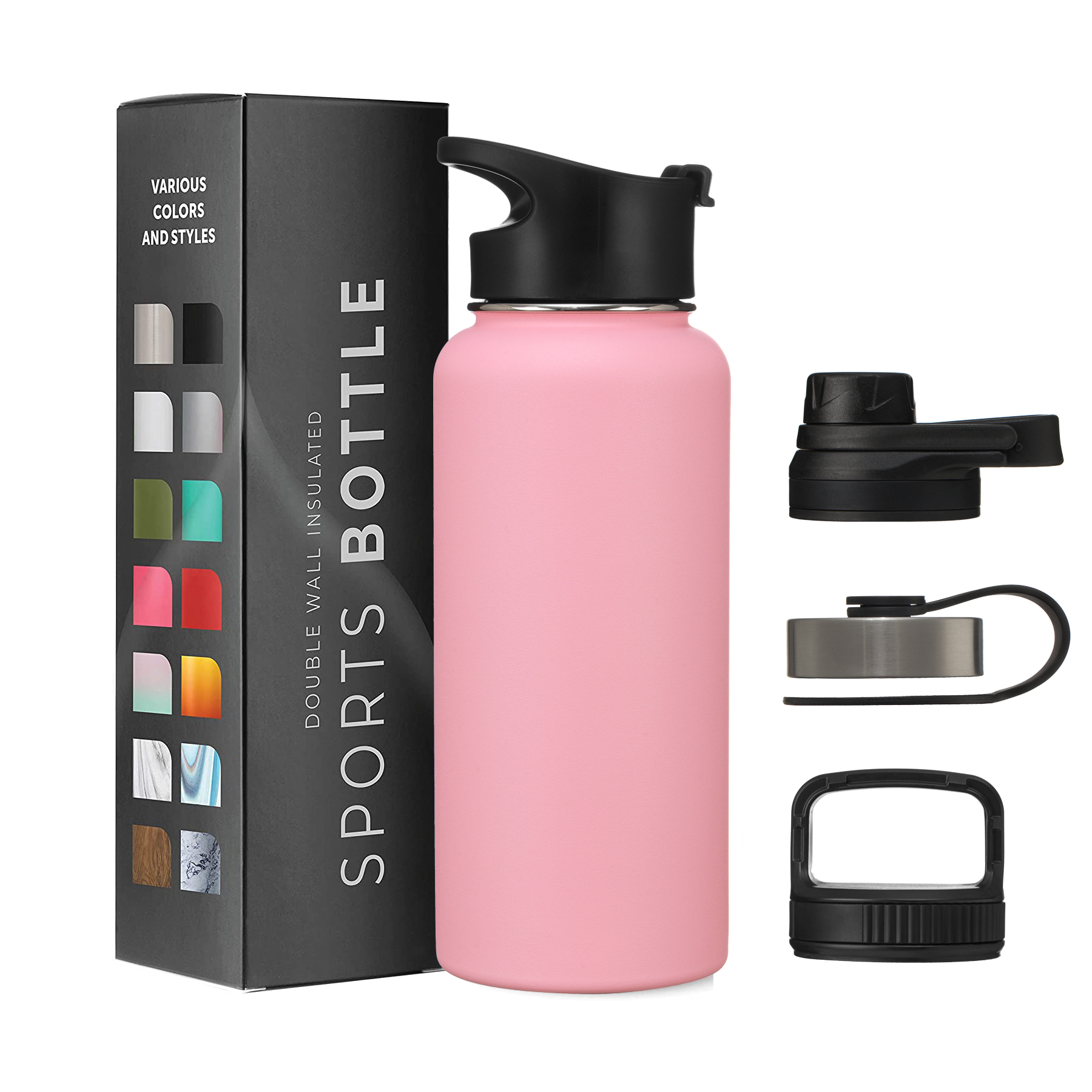 Bottle 32OZ, 3 Lids (Straw Lid) Vacuum Insulated Stainless Steel Double Walled