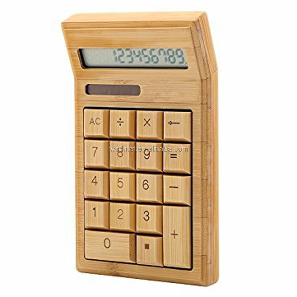 Shenzhen t new design gift item 18 keys solar powered bamboo wooden solar office calculator 12 digits
