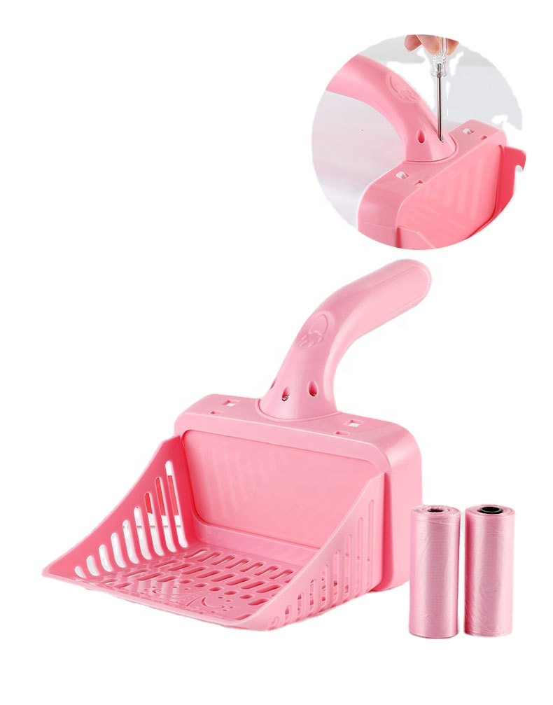 Useful Cat Litter Shovel With Waste Bag Holder Pet Cleaning Tool Scoop Sift Cat Sand Cleaning Products Scoops For Cat