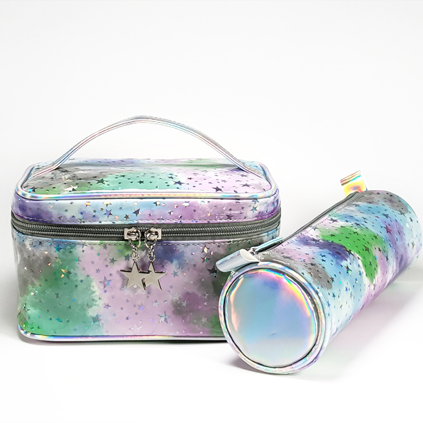 holographic PU leather bag case large capacity makeups bags shiny star pattern travel cosmetic bag