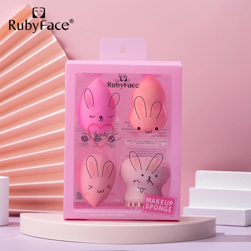 4 Pcs Cosmetics Cute Bear Makeup Sponge Box Latex Free Foundation Sponge Blender With Packaging Box