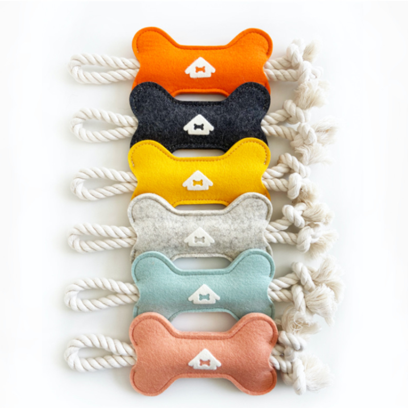 Interactive Felt Dog Bone Tug Toy Cute Rope Puppy Toy for Aggressive Chewers ( 4 Pieces )