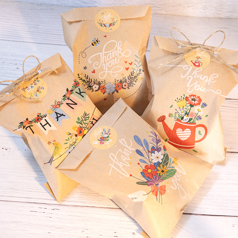 24Sets Thank You Kraft Paper Bags Cute Animal Rainbow Gift Pouch Flower Party Bag Candy Cookie Gift Paper Bag