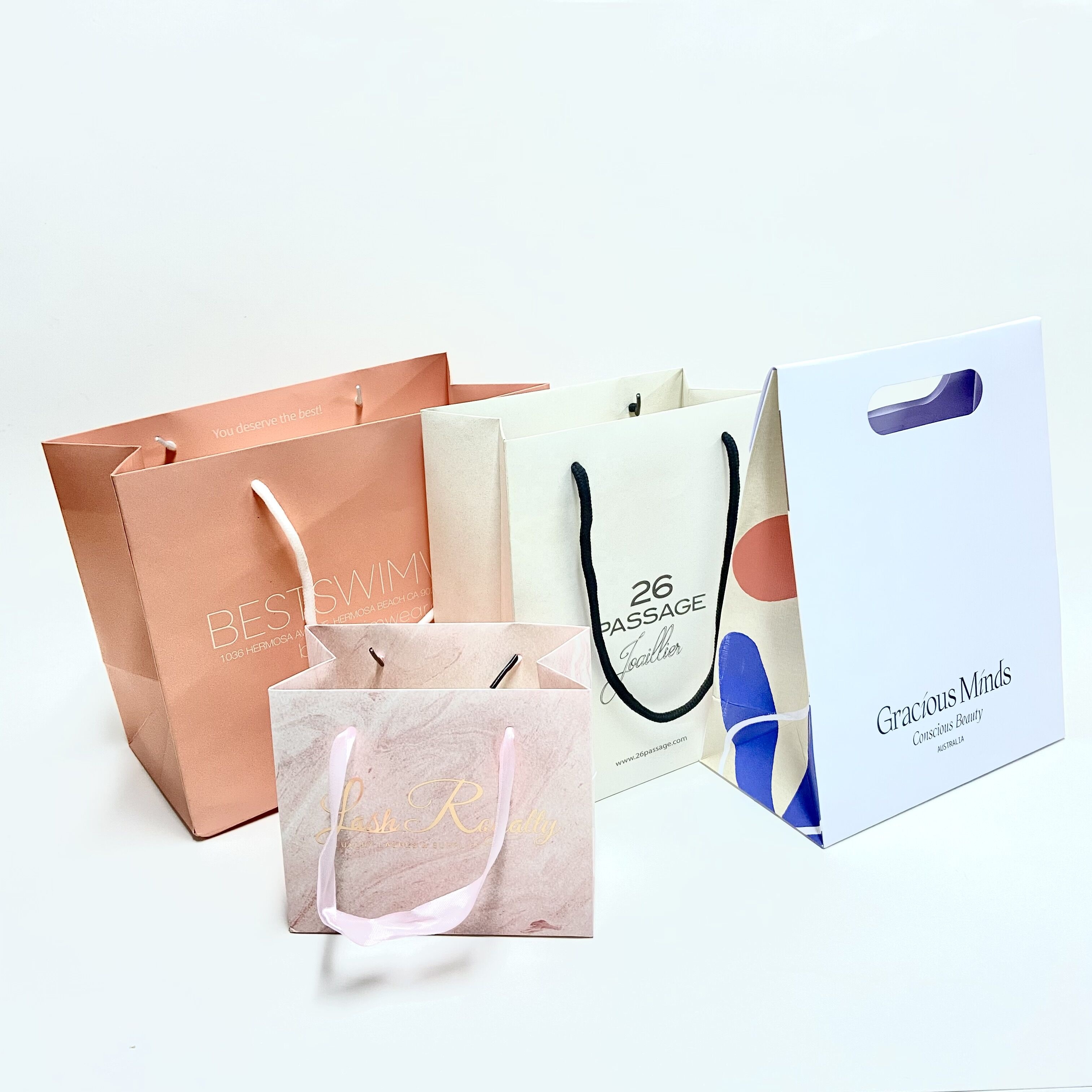 Fashion Boutique Luxury Retail Accept Your Own Small Carry Paper Gift Shopping Bags With Ribbon Handle