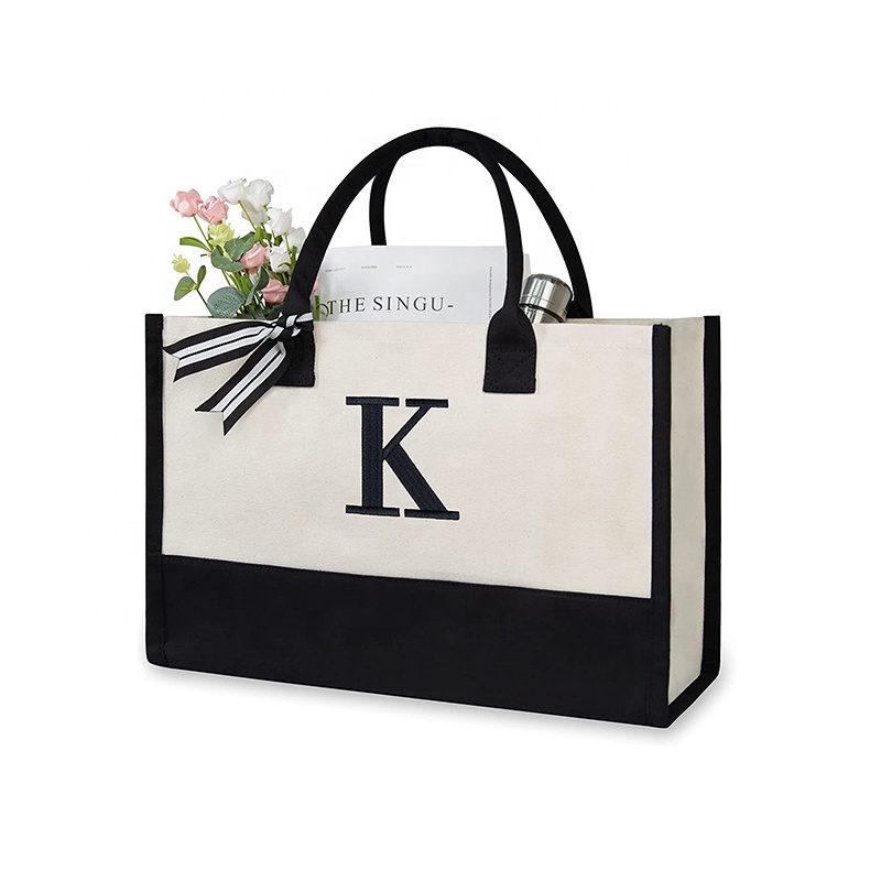 high quality durable waterproof Personalized Initial Canvas Beach tote Bag, Monogrammed Gift Tote Bag For Women shoppin
