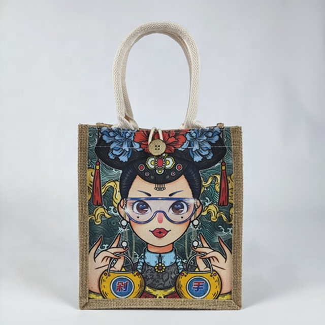 printing burlap Linen handbag jute portable shopping gift bag women waterproof retro linen tote bag