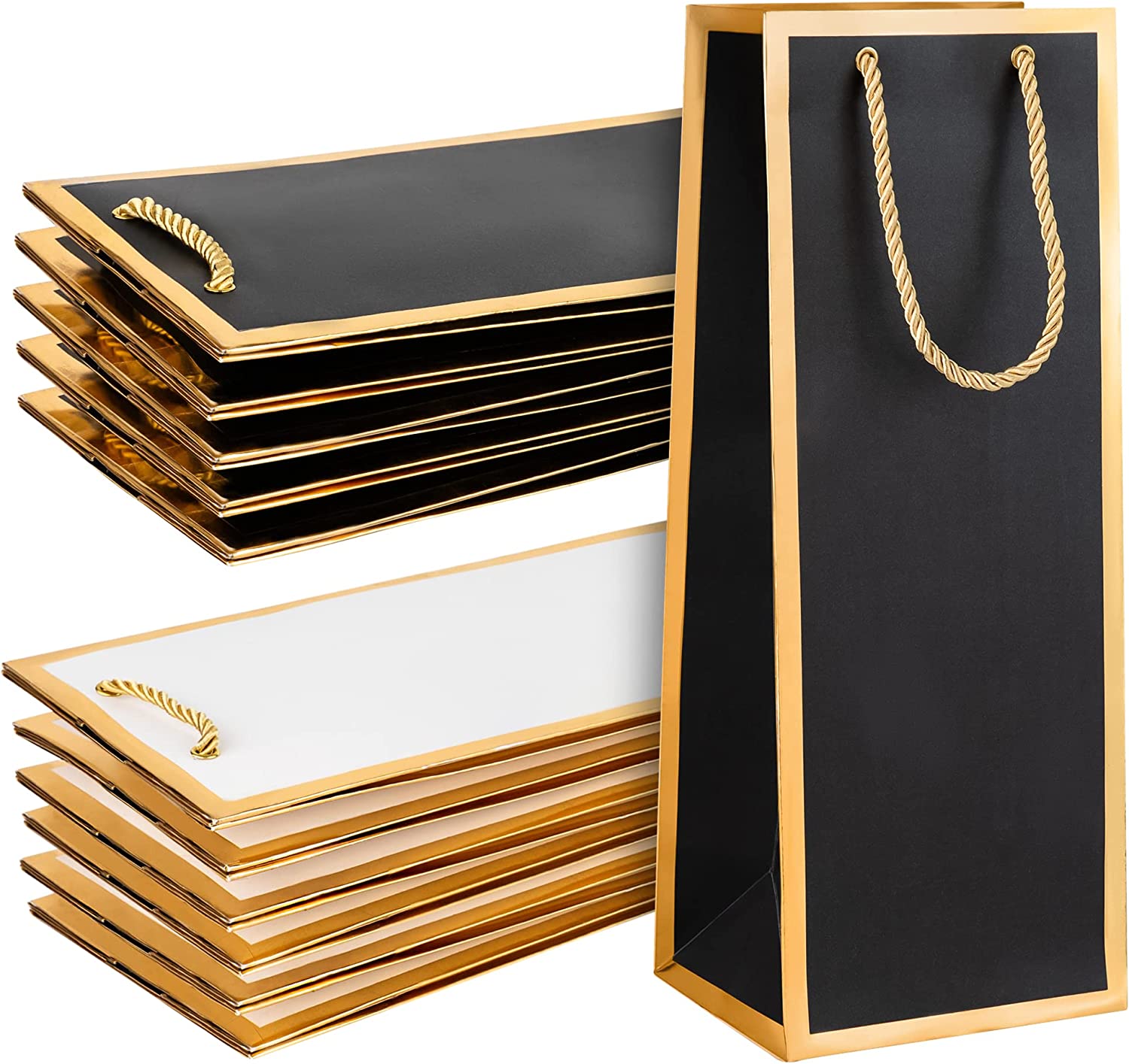 Wine Bags - Wine Gift Bag 12 Pack - Gold Foil Christmas Wine Bags with Rope Handles
