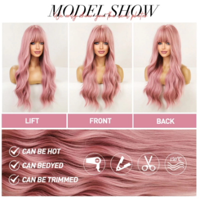 Long Wig with Bangs Natural Wave Heat-resistant Fashion