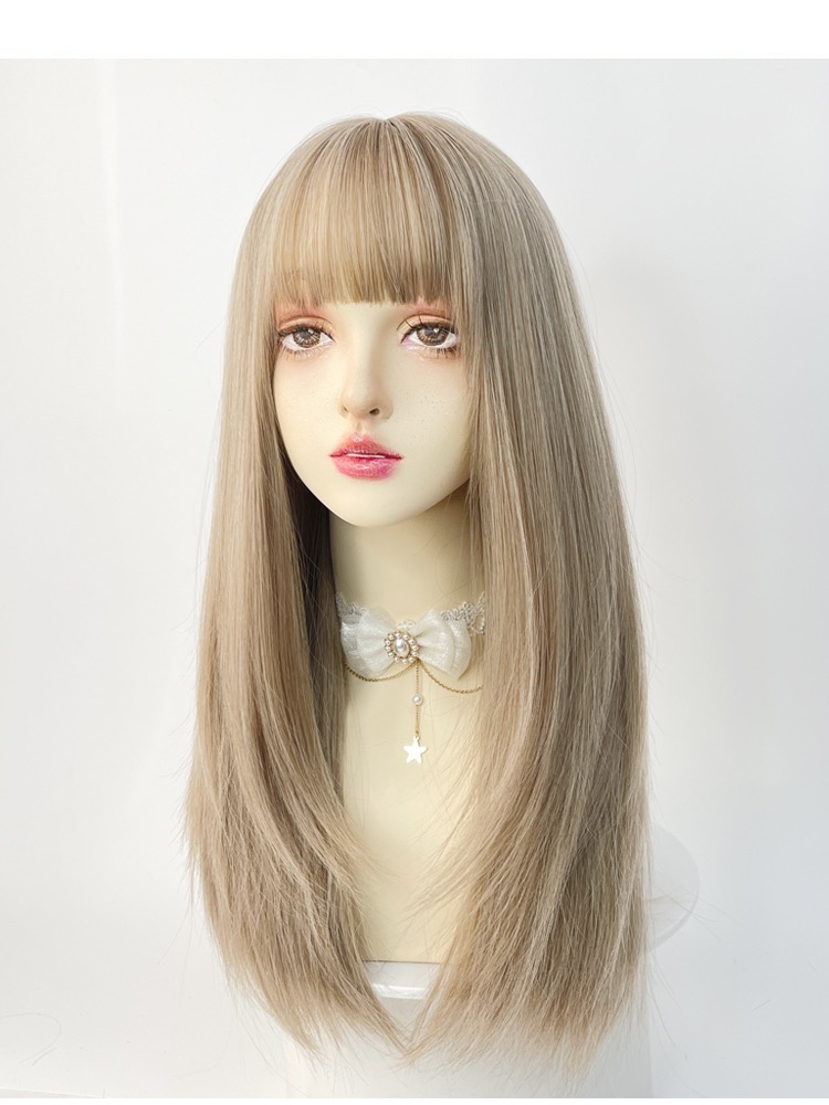 Gray brown gradient medium part French press Pop chemical fiber hair cover