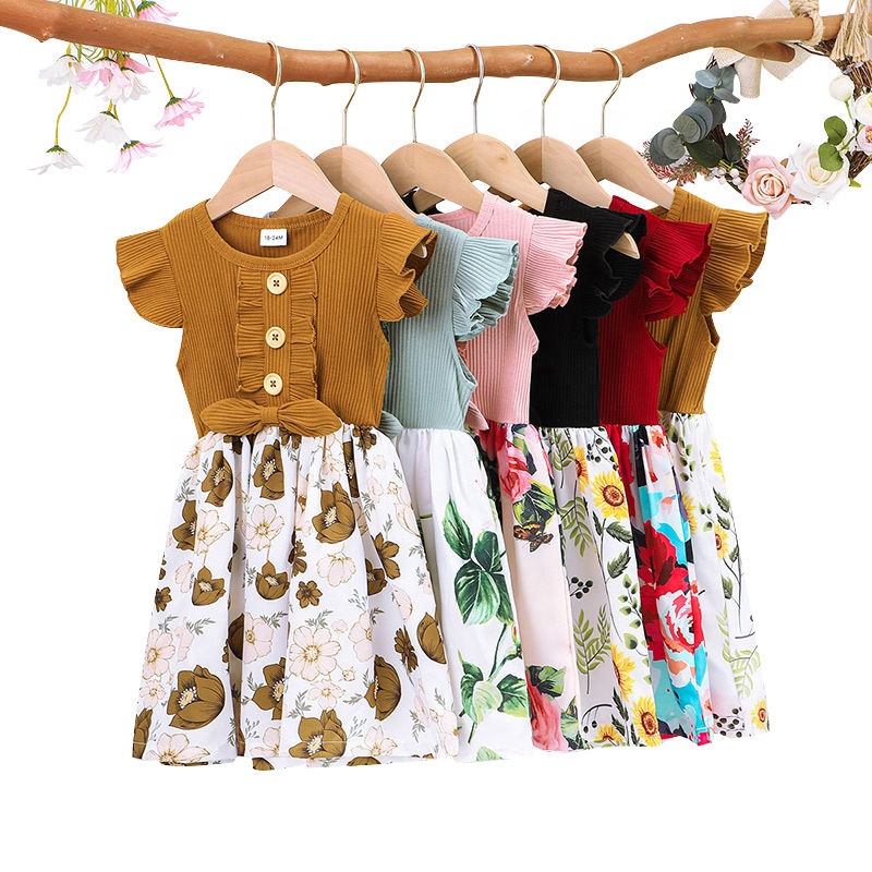 Cheap boutiques summer dress for baby girl short sleeve leopard twirl dresses kids boutique clothing children's clothes