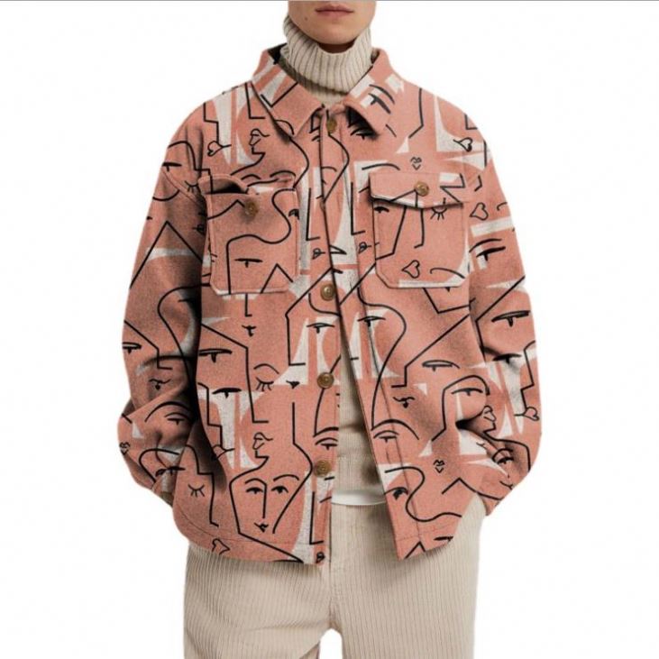 Fashion casual all over printed jacket turn down collar men's jackets & coats big oversized jacket man