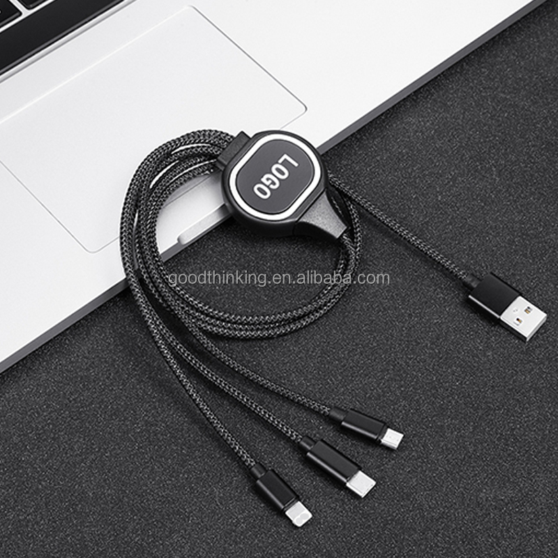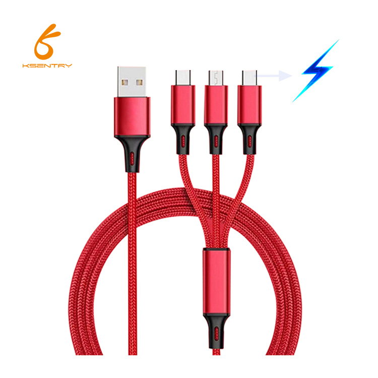 Cheapest Price with best quality Android Mobile Phone Nylon Multi Charger Light Micro Type C 3 In 1 Usb Charging
