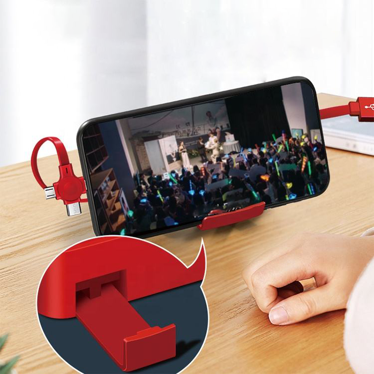 3 in 1 Phone Holder Type C Micro USB Port Charge Multi USB One-Way Retractable Charger Fast Charing Cable for Smartphone