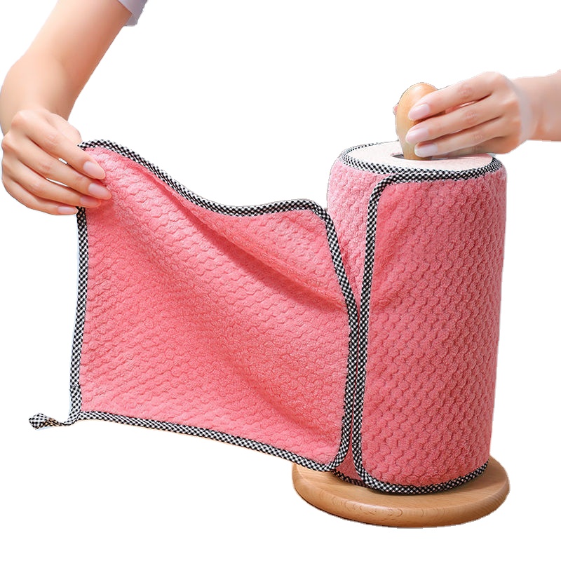 Strong Water Absorption Easy Cleaning Washable Towel Household Kitchen Dishes Cloth Restaurants Pink Color Scouring