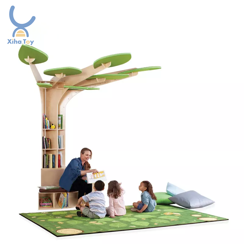 XIHA Children Library Home Furniture Acoustic Learning Tree Bookshelf For Childcare Daycare Shelves Reading Corner Room