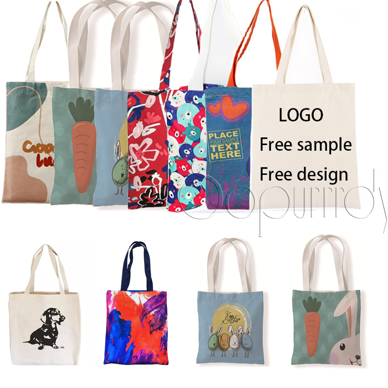 d Full print cotton canvas handbag Cheap promotional gift bag Multi color reusable water wash shopping bag