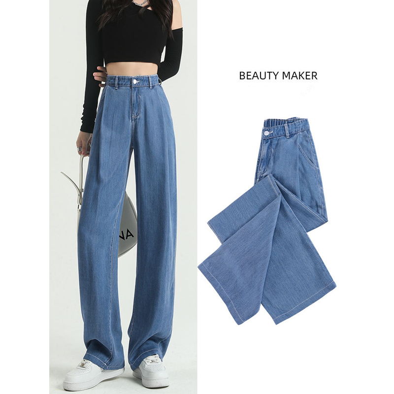 Spring And Autumn High Waist Loose Street Straight Tie Dye Jeans Women Show Thin Wide Leg Trousers