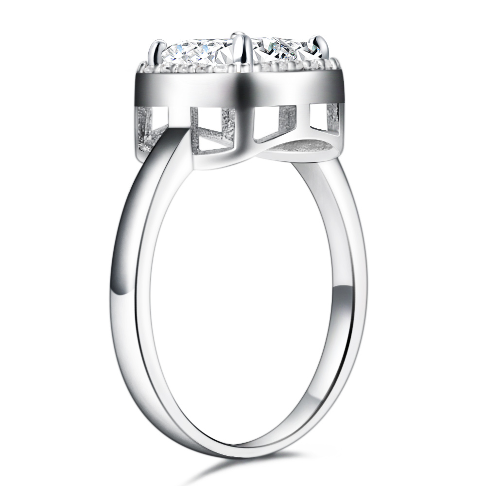 925 Sterling Silver round single grain square zircon Engagement Ring Halo Set Love ring