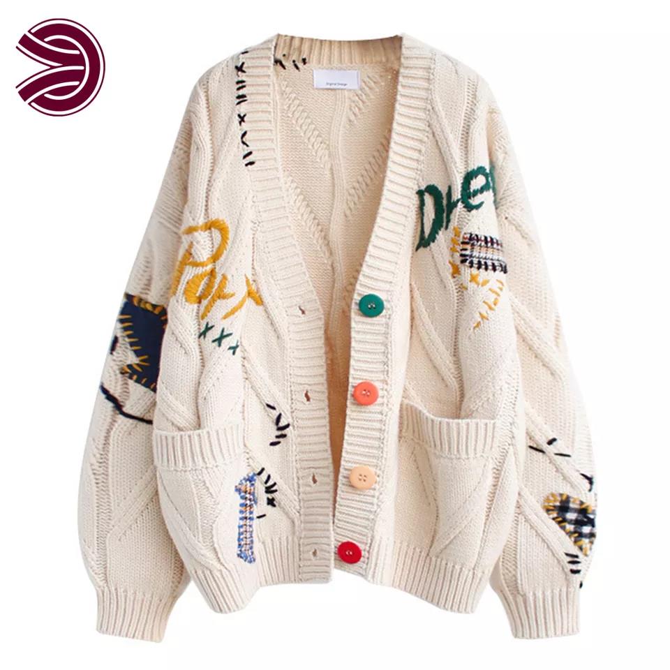 Embroidery Cardigan Knitted Sweater Jacket Knit Cardigan Coat