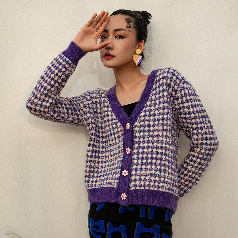 & Women sweater Jacquard knitwear Girls knit winter long Sleeve ladies clothes Knitted Cardigan sweater w