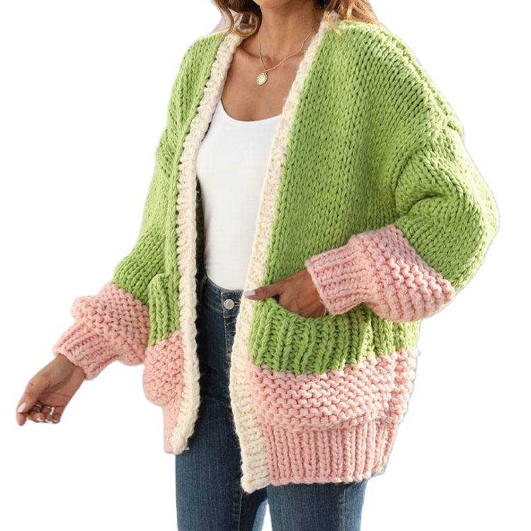 Contrast Color Knitted Cardigan Long-sleeved Top Jacket Sweater