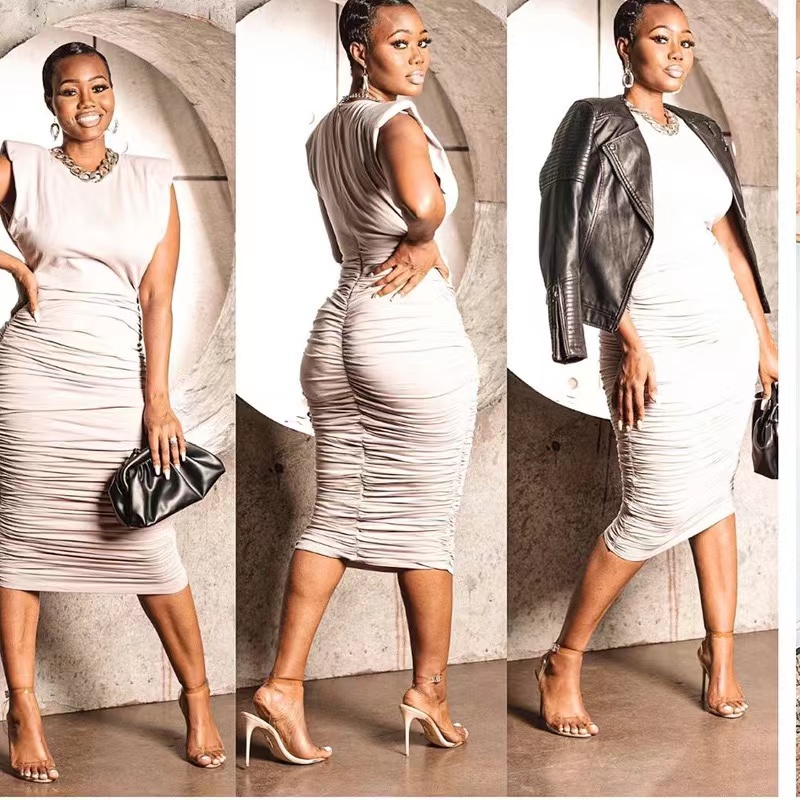50%J&H 2022 new arrivals Slim fit shoulder pads solid casual dress women fashion slim fit bodycon summer dress for young wo